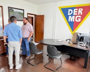 O prefeito Ricardo Garcia esteve na manhã desta terça-feira na sede do Departamento de Estradas de Rodagem de Minas Gerais (DER-MG), onde se reuniu com o diretor regional, Jorge Cussi Neto, e o técnico da regional, Marco Aurélio Dib.
