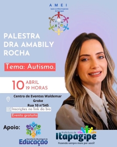 A AMEI – Apoio às Mães Especiais de Itapagipe convida você para uma palestra especial com a Dra. Amabily Rocha, que abordará o tema Autismo.