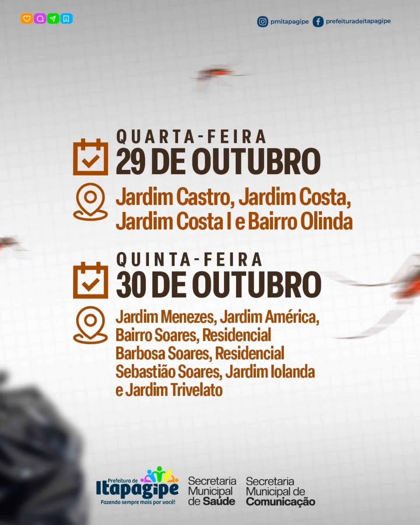 • 29/10 – Quarta-feira: Jardim Castro, Jardim Costa e Bairro Olinda