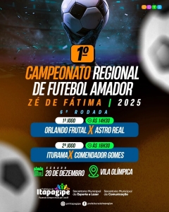 A emoção do futebol amador toma conta da Vila Olímpica com a 6ª rodada do 1º Campeonato Regional de Futebol Amador – Zé de Fátima | 2025