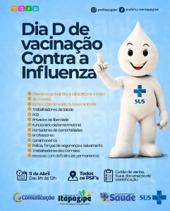 No dia 11 de abril, acontece o Dia D de Vacinação contra a Influenza.