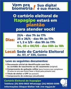 ATENÇÃO, ELEITOR: O Cartório Eleitoral de Itapagipe estará em Plantão!
